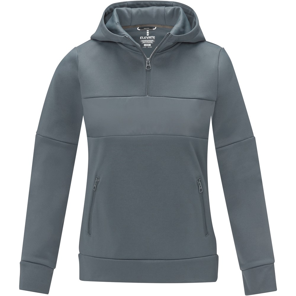 La felpa con cappuccio anorak a mezza zip da donna Sayan è una combinazione unica di prestazioni e stile. Il design a giacca a vento combina perfettamente moda e funzionalità, con un quarto di zip per una maggiore versatilità nella vestizione. Realizzata in una mix di 350 g/m² di poliestere e maglia Sorona®. La fibra Sorona® migliora l'eco-compatibilità della giacca incorporando un elemento sostenibile senza compromettere le prestazioni. Il tessuto a contrasto sul pannello frontale, realizzato in nylon ripstop 280T, arricchisce il design con la sua resistenza e consistenza ed è il luogo ideale per mostrare il tuo marchio. Che tu stia affrontando un'avventura all'aria aperta o semplicemente la tua routine quotidiana, la felpa con cappuccio Sayan combina senza sforzo moda e funzionalità. Questa felpa è disegnata con una forma aderente per un look femminile.