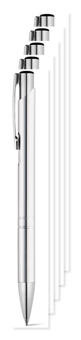 Pack da 5 Egotier 91311 - Penna a sfera in alluminio con clip - Argento