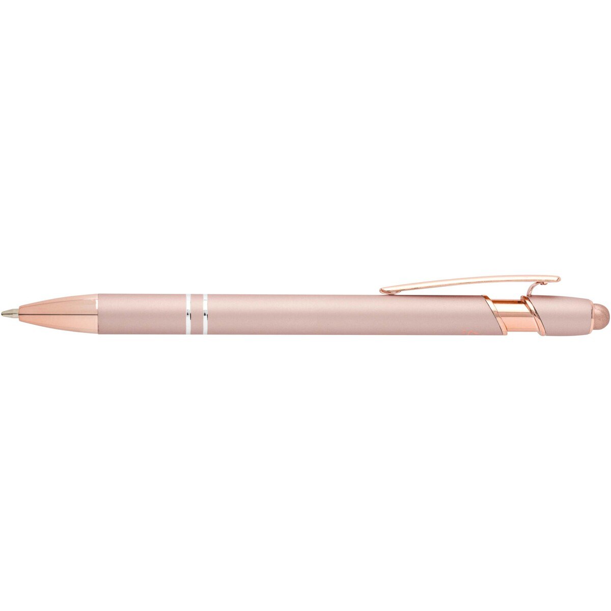 La penna a sfera Nanna con finitura oro rosa, presenta un fusto realizzato in alluminio riciclato con stilo tattile in silicone. L'alluminio riciclato riduce la quantità di rifiuti nelle discariche e aiuta a conservare le risorse naturali con l'obiettivo di ridurre le emissioni di gas serra. Colore dell'inchiostro: Blu. Capacità di scrittura: 800 metri. Dimensione del pennino: 1,0 mm.