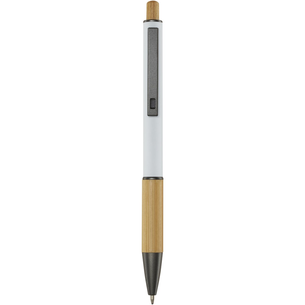 La penna a sfera Darius è realizzata in alluminio riciclato, che richiede meno energia nella produzione rispetto all'alluminio proveniente da materie prime. Riduce inoltre la quantità di rifiuti nelle discariche e aiuta a conservare le risorse naturali con l'obiettivo di ridurre le emissioni di gas serra. Il pulsante e la parte inferiore del fusto sono in bambù. Colore dell'inchiostro: Nero. Capacità di scrittura: 800 metri. Dimensione del pennino: 1,00 mm.